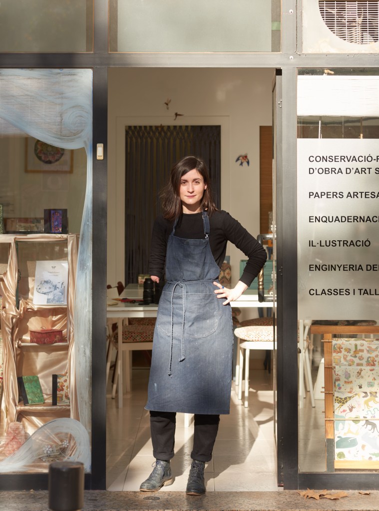 Nascuda a Barcelona, vaig cursar una llicenciatura en Belles Arts amb especialitat en Conservació – Restauració a la UB. Després vaig centrar els meus interessos en la creació i la cura dels llibres, començant el CFGS d’Arts del llibre a l’Escola de disseny i Art Llotja i completant un màster de conservació de llibres al Camberwell College of Arts, a Londres. Després d’uns anys gaudint treballant en arxius i museus, entre ells The National Archives de Londres i l’Arxiu Nacional de Catalunya, trobava a faltar la vessant més artística del llibre com a objecte, i al cap d’un temps i amb molt d’esforç vaig decidir obrir el meu propi taller, inaugurat a finals del 2017. La Frivé és una paraula inventada i que prové de frivolité, una tècnica tradicional de treballar el fil i que de tant en tant encara practico. El logotip de la marca també el vaig extreure a partir d’un disseny realitzat amb aquesta tècnica. La paraula, en no tenir un significat concret, engloba tot el que faig al taller; enquadernar, restaurar llibres, dibuixar, retallar, ensenyar la màgia del paper, compartir estones de creació, imaginar.